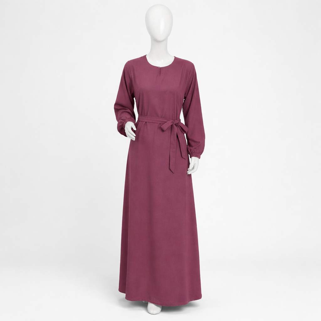 Plain Maxi Abaya for Women in Pakistan – Premium Nida Fabric Belted Abaya, Full Sleeves Elastic Cuffs, Modest Islamic Wear, Casual & Formal Abaya Dress (Mauve)