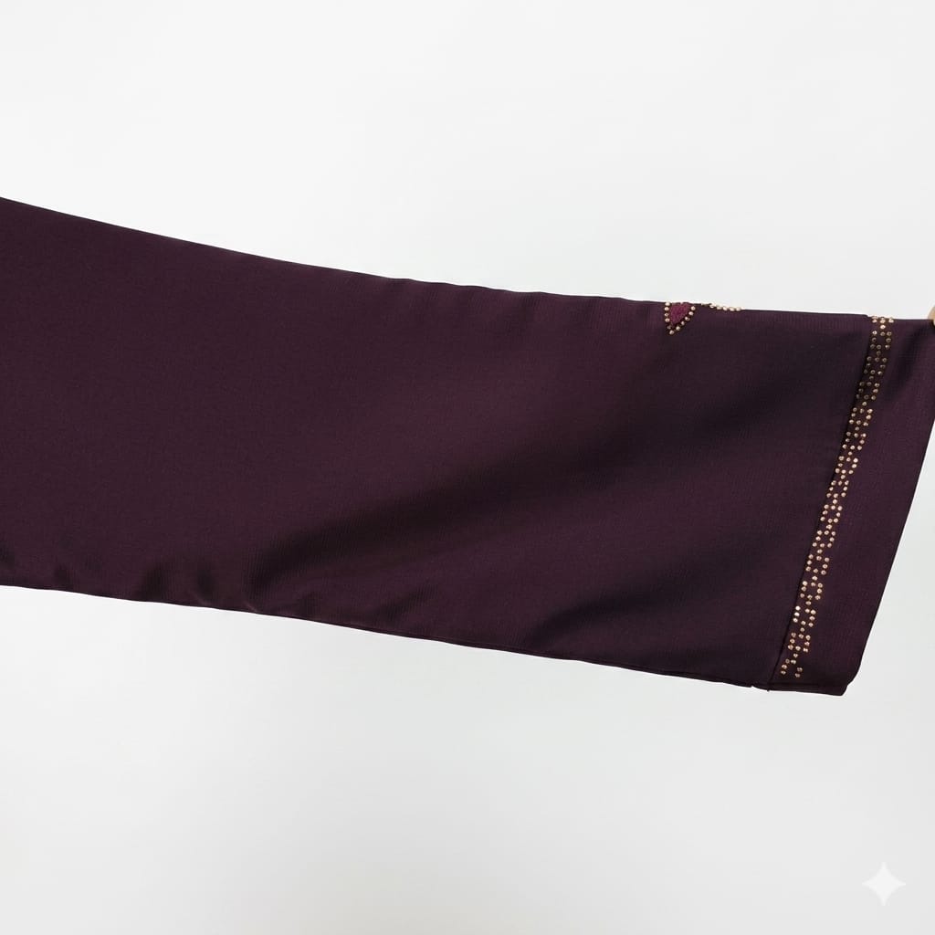 The plum brown shade is unique and sophisticated, making it ideal for both daytime and evening wear. Unlike plain black abayas, this color offers a fresh and fashionable appearance while still remaining modest and elegant.